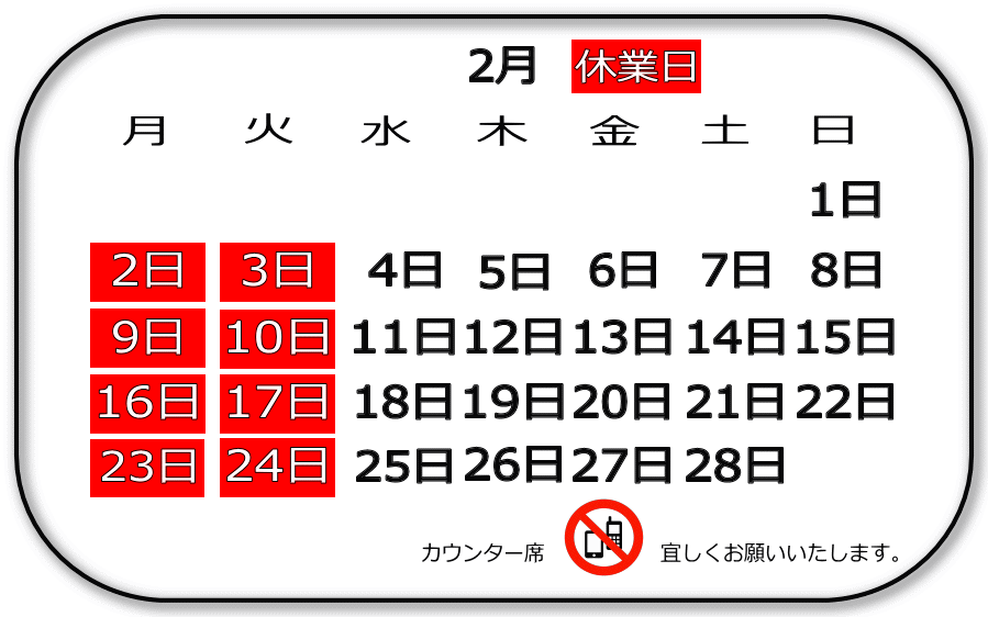毎週月、火曜日定休